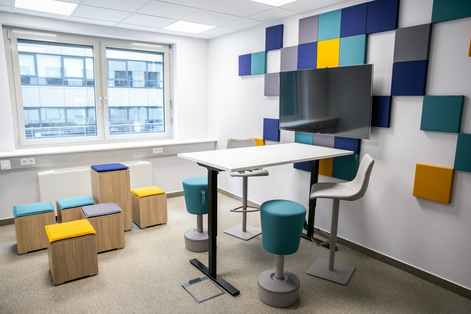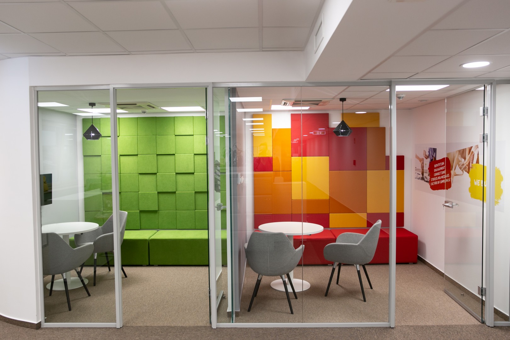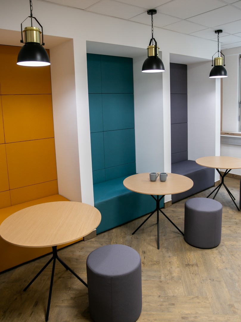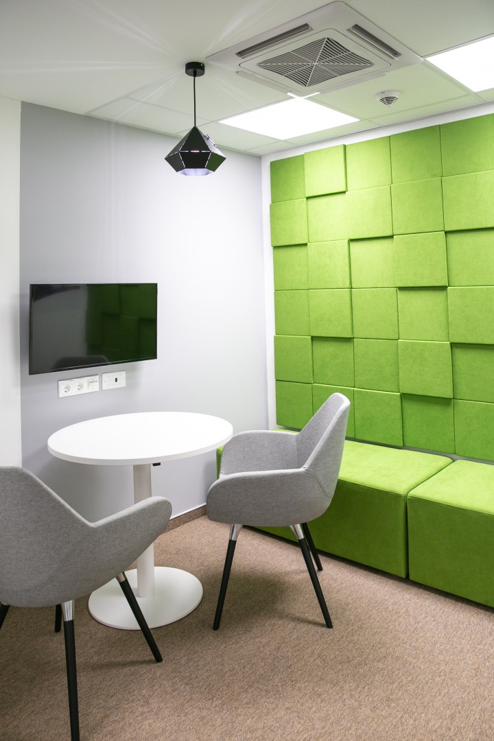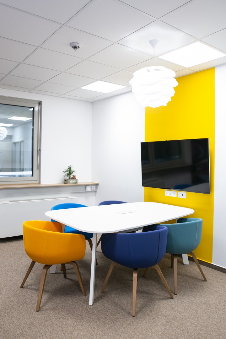 A munkaállomások egy tágas open office-ban kaptak helyet, azonban számtalan olyan privát szobát alakítottunk ki, ahol nyugodt környezetben el tudnak vonulni, telefonálni vagy éppen kicsit feltöltődni a dolgozók.