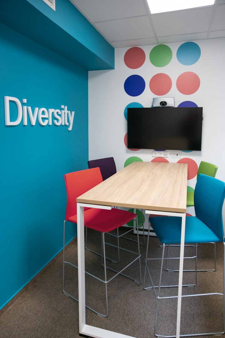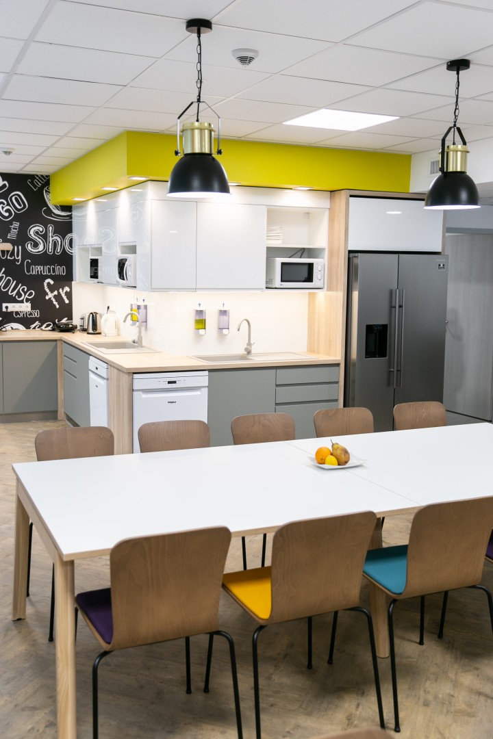 Minden helyiségnek külön hívó szava van, úgy, mint PEOPLE, INNOVATION, PROTECT, BUILD, TOGETHER, SCIENCE, INCLUSIVE, DIVERSITY… ezek azok az értékek, amik fontosak a Danone dolgozói számára.